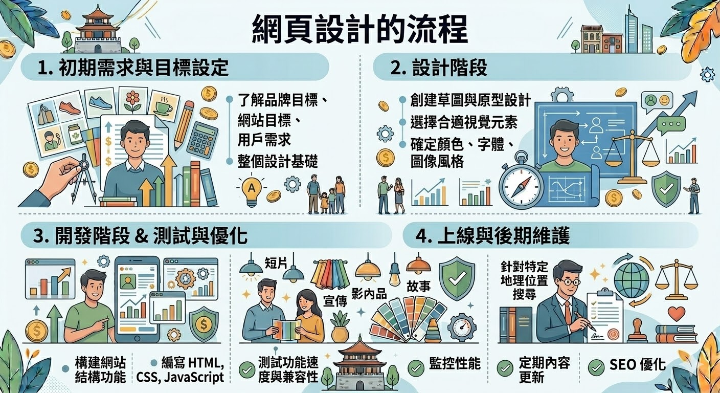 - 開發階段:網站結構建設與程式碼編寫,確保網站功能與互動性。