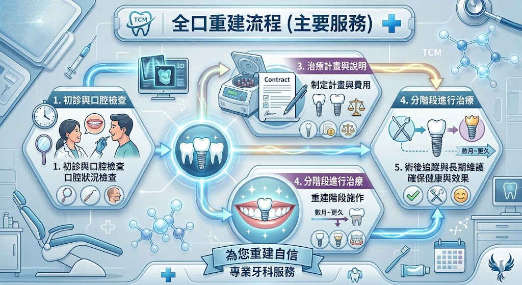 一個好的全口重建規劃應該透明,清楚告知每個階段的處置方式與費用,避免治療過程中的困惑與延誤。